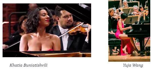Desde hace algunos años es habitual ver en las salas de conciertos a mujeres pianistas con escotes abisales y minifaldas que parecen cinturones anchos. Se trata de jóvenes artistas que muchas veces tienen un altísimo nivel pianístico. De momento los chicos no muestran los abdominales; de momento.