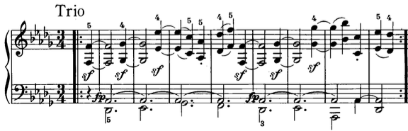 En el segundo movimiento puede ser difícil encontar el tempo adecuado. Allegretto a la negra es demasiado lento y a la blanca con puntillo demasiado rápido. Lo mejor es buscarlo en el trío que tiene un inequívoco aire de danza campesina. Ese elemento popular, casi rural, es muy frecuente en Beethoven. Una vez Alicia de Larrocha nos dió a mí y a una alumna mía un consejo que vale su peso en oro: “para encontrar el tempo mire el segundo tema”. En este caso el segundo tema es el Trío.