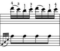 Otro problema es la articulación del tema principal. Suele tocarse así: