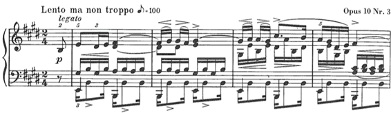 Este problema con el tempo también lo encontramos en el estudio opus10 nº6 en mi bemol menor; también se toca demasiado lento, “a la Wagner” o “a la Mahler”. El único estudio realmente lento – y tampoco tanto - de las dos series es el opus 25 nº7 en do sostenido menor.